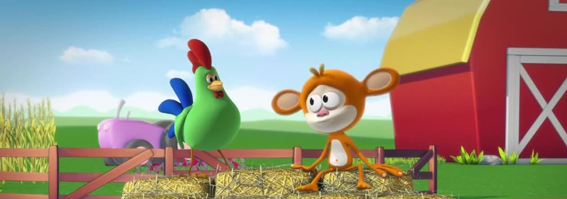 Ever tried making a hay tower? Well Monkey did only not very successfully and when it was time to clean things up he got some unexpected help from his friend the horse. Horse was eager to play Monkey’s favorite game… “Monkey See Monkey Do”! Under horse's cheerful guidance, Monkey and the children shake their heads, bray and of course gallop around the lovely farm. Join the country fun with monkey and his friends!