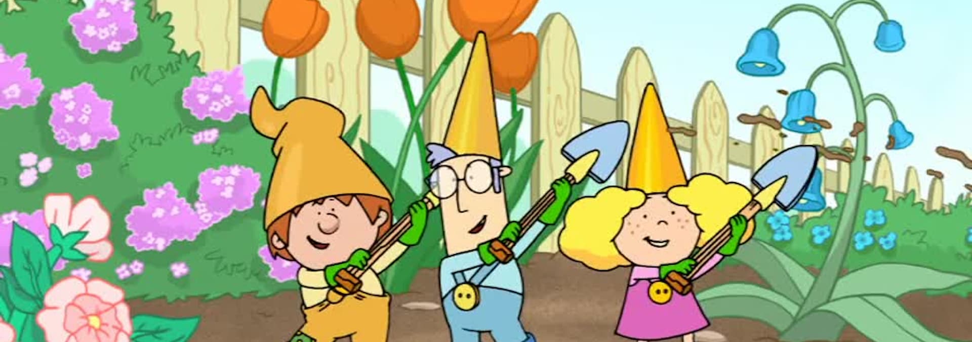 Gordon and the Gnomes prepare to celebrate the first day of Spring. The Gnomes are busy repairing, oiling and polishing their lawn mowers ready for Meadow Mow Day. For tomorrow is the first day of spring and as usual they will celebrate it with the first cut of the meadow grasses and a performance of the Chief Gnome's 'Trumpet Hat Solo'. But when the big day arrives, the Gnomes they awake to discover a blanket of snow on the ground. Instead of cancelling the festivities, Gordon suggests they use the mowers as snow ploughs to clear the ground and make snow-Gnomes.