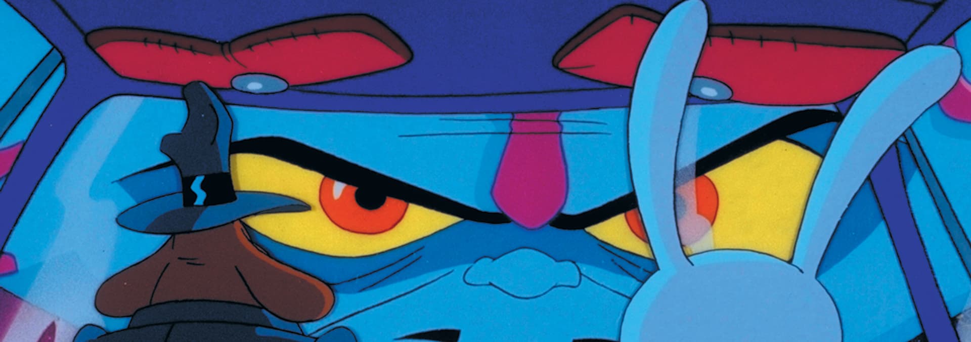 Sam and Max are on a dangerous mission. / Max has a watch that can move through time.
