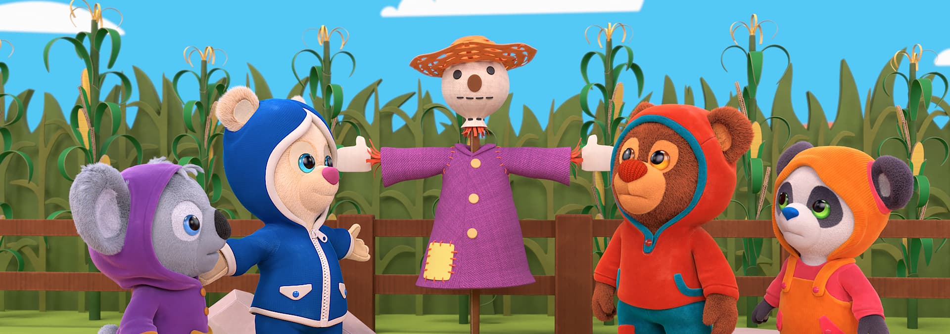 Scout and his friends help a baby duckling settle down for a nap.