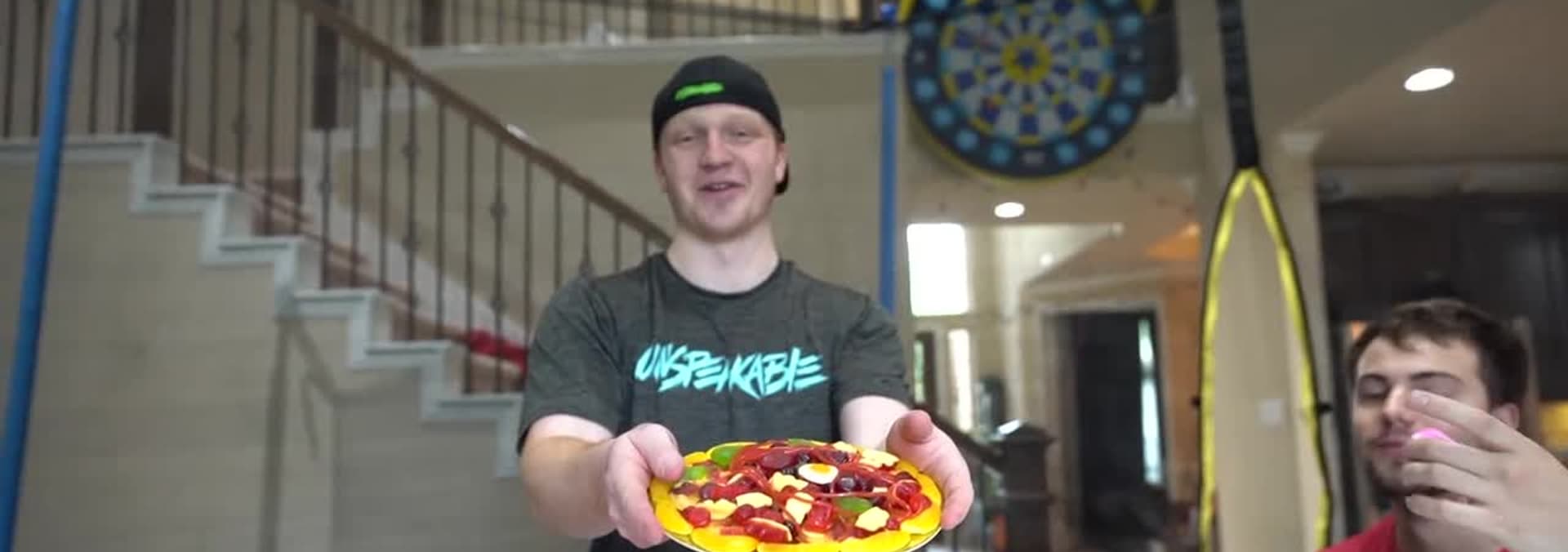 Unspeakable and his friends see who can stay on the trampoline the longest. He then builds a park for his cat.