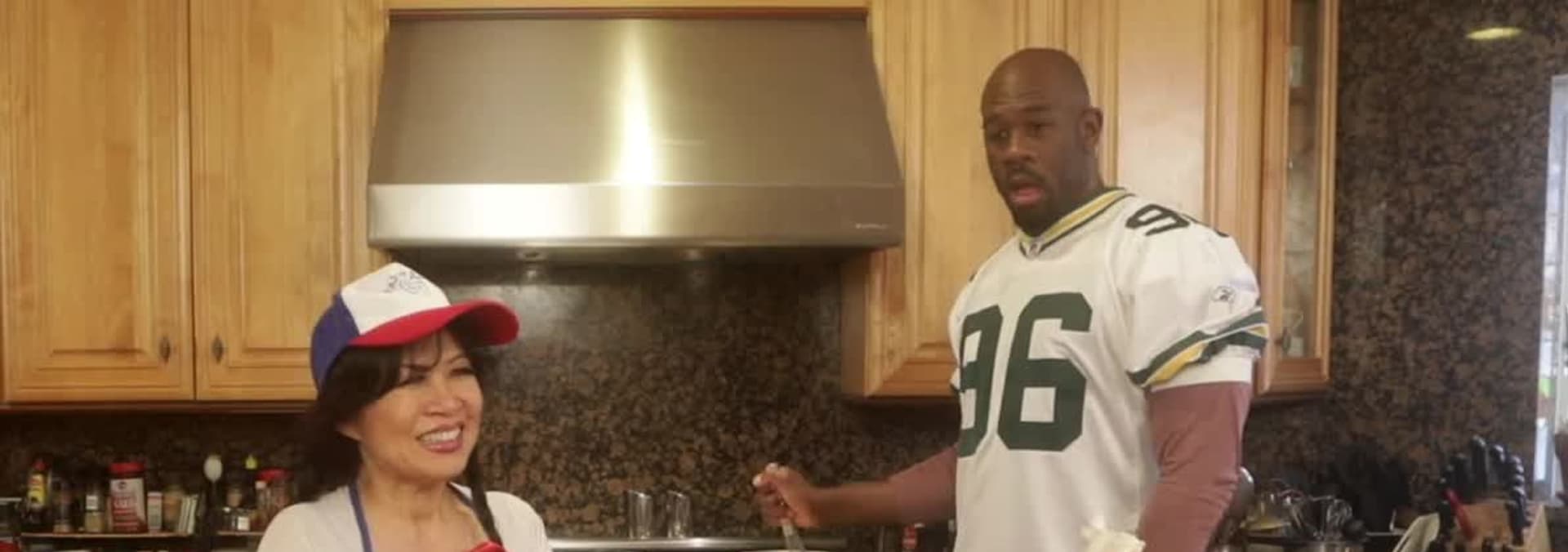 Joycelyne and Green Bay Packers Defensive End, Michael Montgomery, tackle one of the most popular meals of all time, macaroni and cheese.