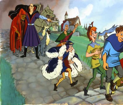 A clever and comic fool by the name of "The Jester", helps Frollo steal the King's crown.
