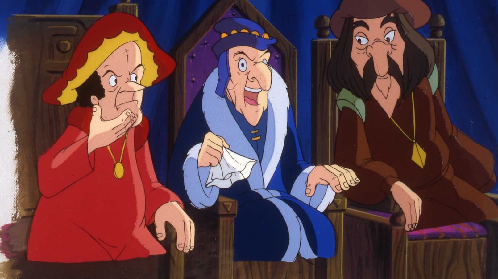 Frollo uses a magic trumpet in his plan to hypnotize the King.