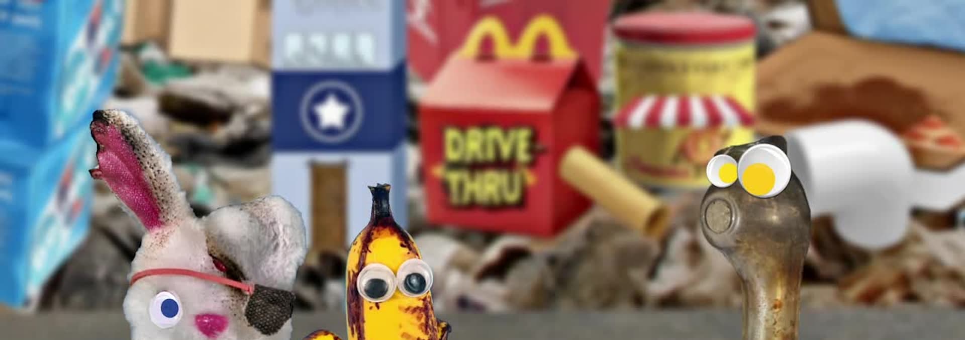 During a visit to the Historic Trash Pits, a sinkhole opens up sending Patches and Graffiti Steed on a journey to the early aughts. Trash is Forever (parody ad).
