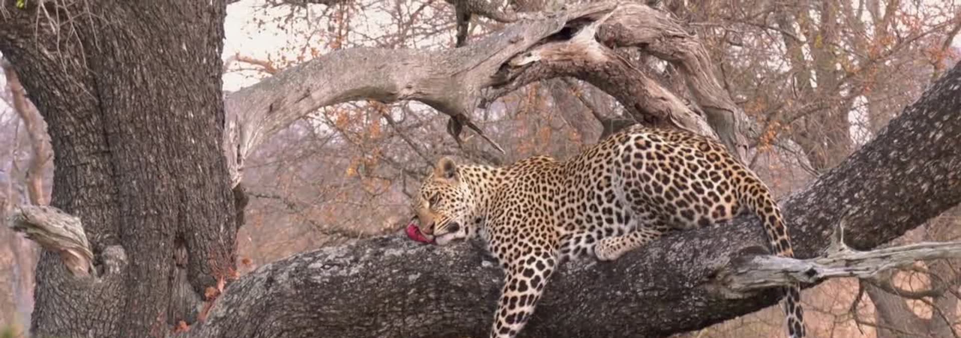Youthful clown of the Djuma leopard kingdom, Hosana, makes a living ambushing prey at waterholes. The youngest member of North Clan lives up to his nickname Pocket Rocket.