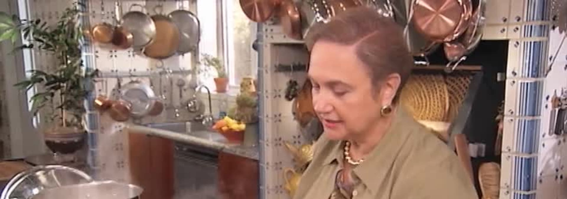 Lidia demonstrates her favourite recipes for calamari from Palermo, Sicily, and a simple pesto Trapanese-style.