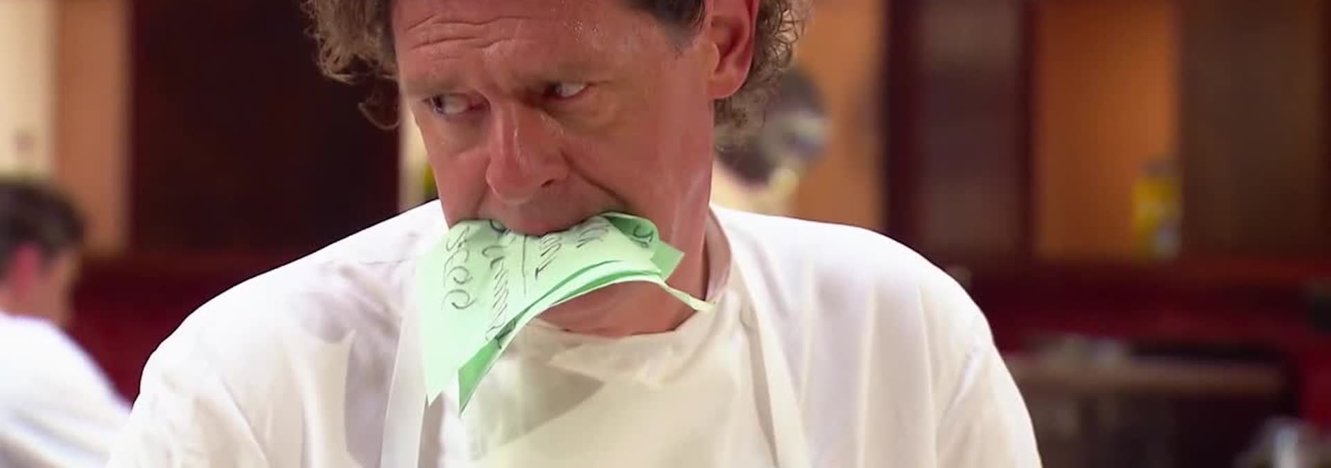 The bottom 2 chefs from yesterday’s challenge face each other in a one-on-one Service challenge.