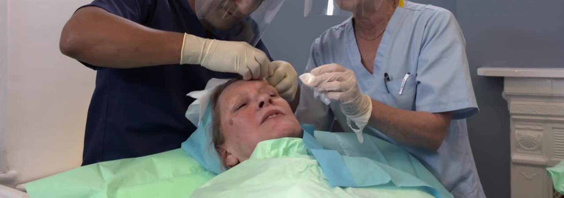 The clinic treats patients with acne, psoriasis, cysts and lipomas. Dr. Spierings treats a shoulder lipoma.