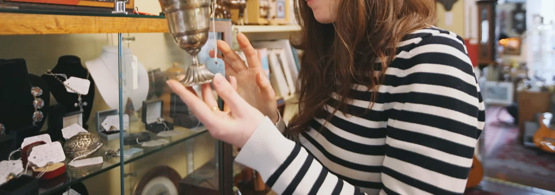 Natasha Raskin Sharp finds a 1920s flapper dress and Ishy Khan picks up glass inkwell.