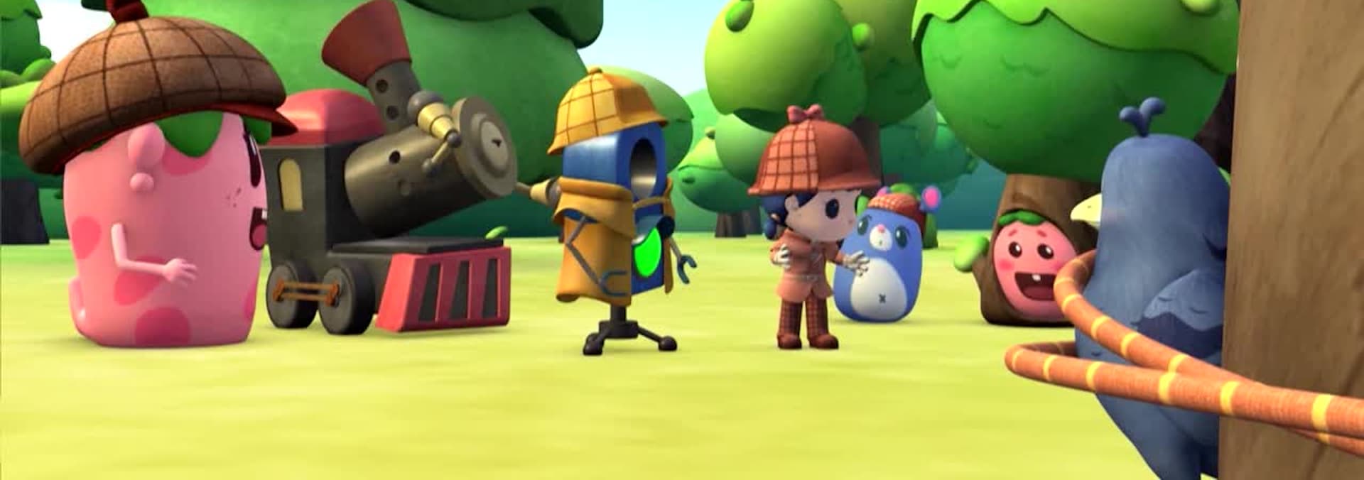 Rubi, Yoyo, Little Train and the Strawberry brothers investigates a garden theif.