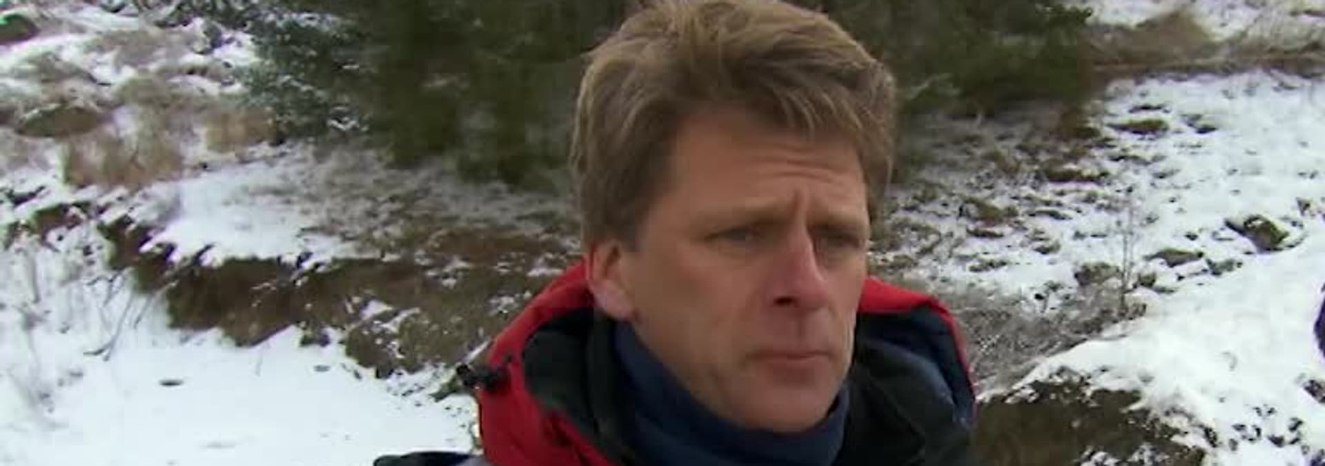 The celebrities trek up into the mountains where the equipment they need has been buried in a snow drift.