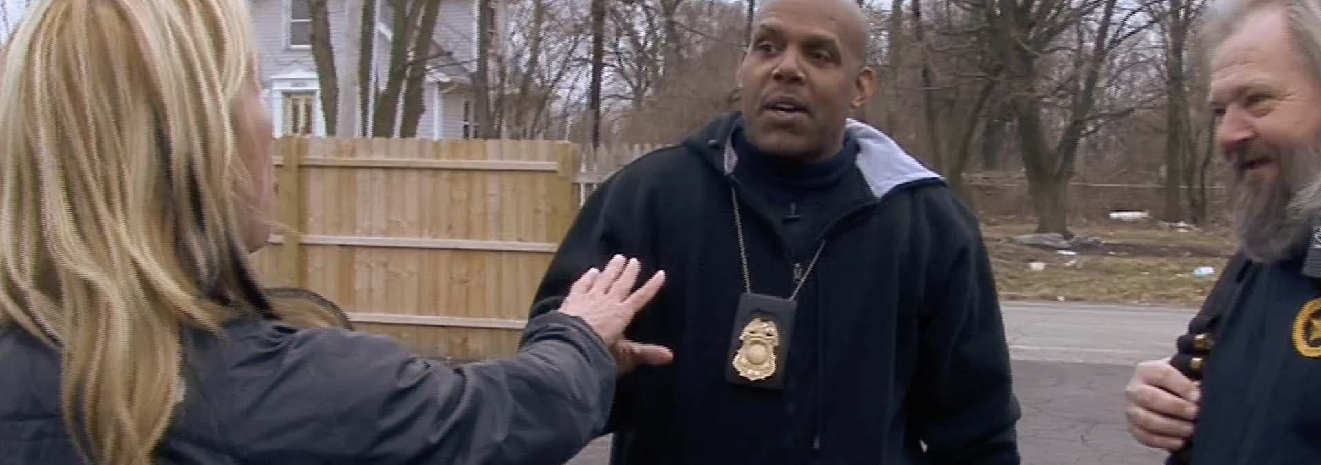 The Bounty Hunters are shocked that their cuffed defendant manages to slip out of the car and take off.