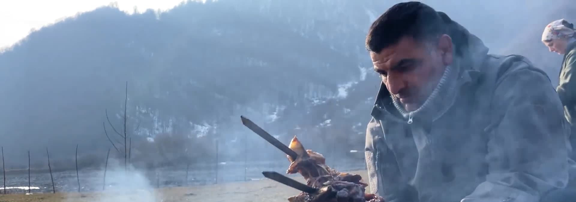 We are treating you to a hearty fish head soup cooked slowly over open flames. The true secret to this rustic dish? Plunging a glowing red-hot log directly into the pot for an incredible smoky finish! Take a break, breathe in the fresh village air, and discover the magic of our wilderness kitchen.