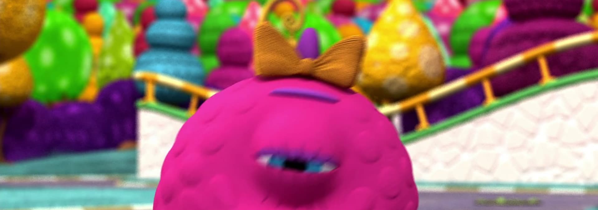 Mr Googly Eyed Monster needs help to get his Wally Ball-y rolling again, so he calls on the Monster Math Squad! They learn that what Wally Ball-y needs is to be on a slope, which will help him get rolling. Goo makes himself into a slope, but they discover that for this slope to work, Wally Ball-y needs to go to the top of it, not the bottom! Then they learn that the slope cant be too steep, either. Soon they have Little Wally Ball-y rolling, making Googly-Eyed Monster very happy. Yay! We did the math!
