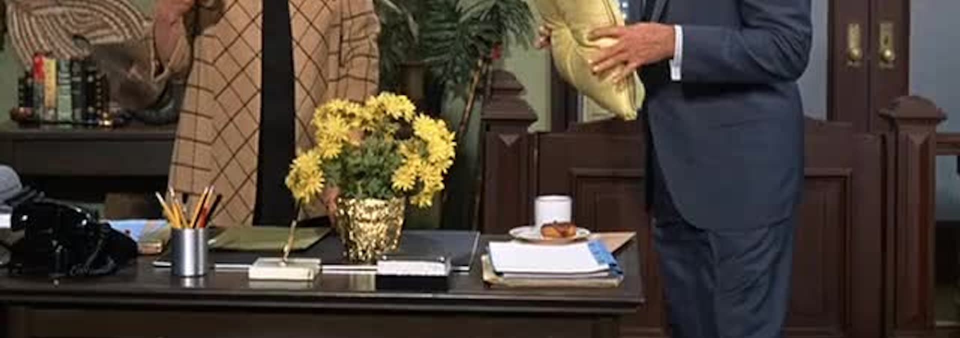 Determined to sell WAYNE NEWTON on hiring her son Craig as his drummer, Lucy Carter turns an audition into one of the most zany experiences in the history of the music profession during the “Lucy Sells Craig to Wayne Newton” segment of “Here’s Lucy.”