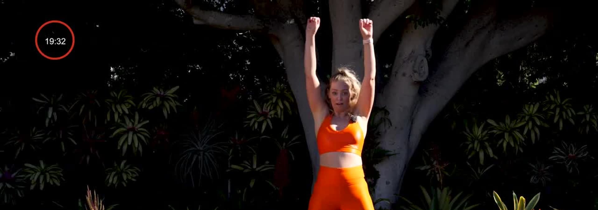 This apartment friendly routine focuses on core, balance, and strength. You'll work for about 45 seconds with a 15 sec break between each move.