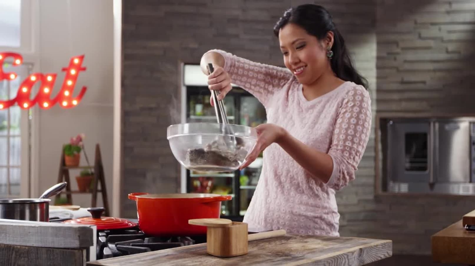 Charming host Pailin Chongchitnant fills the One World Kitchen cooking studio with fresh Thai aromas.