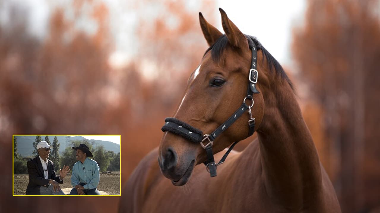 Morgan Freeman, pays a visit to the Horse Talk stables to talk about his favorite animal.