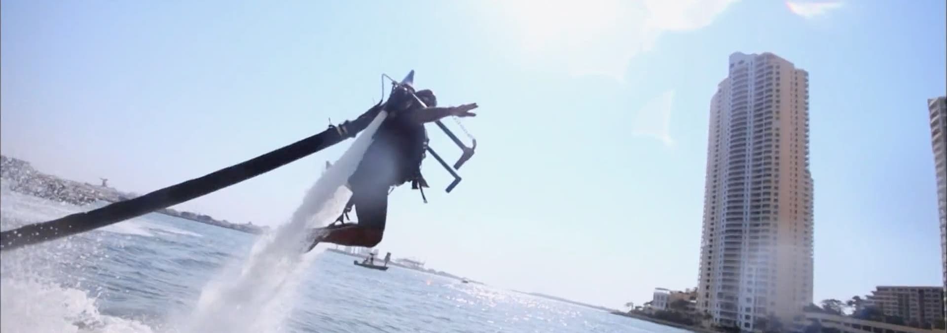 A look at a water-propelled "jetpack," inflatable boat, GPS-enabled goggles, a hang glider and more.