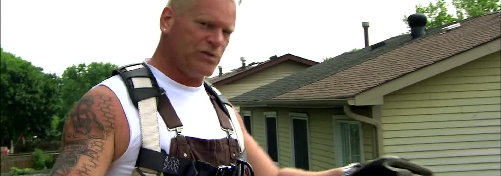 Hail Mike’s pro pals, who pitch in to finish the job at the rain-swamped home.
