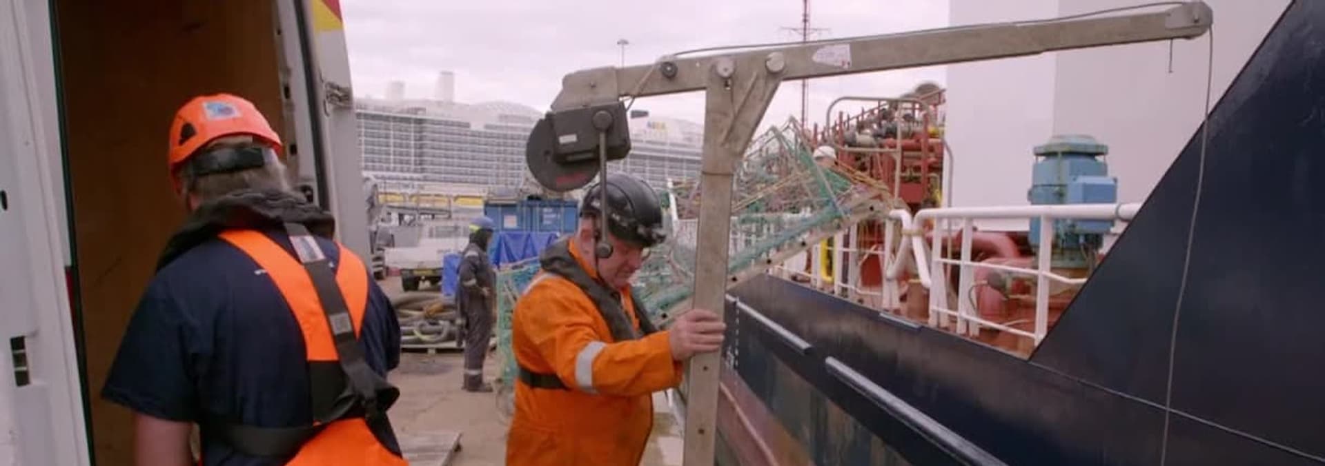 In Britain's biggest port, cargo grinds to a halt after a tugboat picks up a mystery object in its propeller. The team attempts to rescue a cruise liner amid a winter storm.