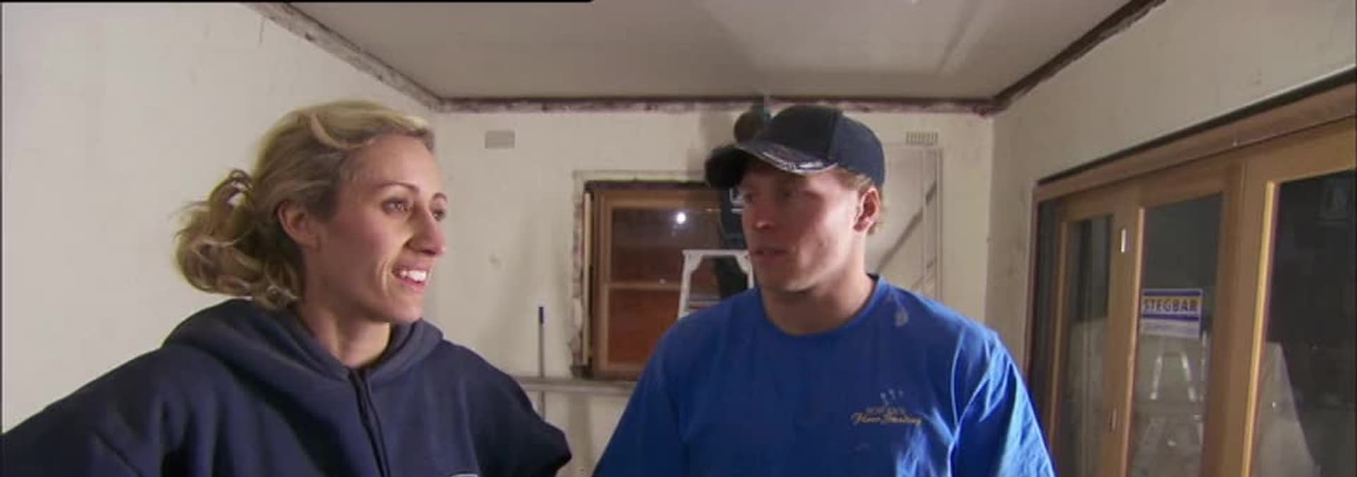 The teams are faced with a major demolition job as they race to complete their living rooms in just one week.