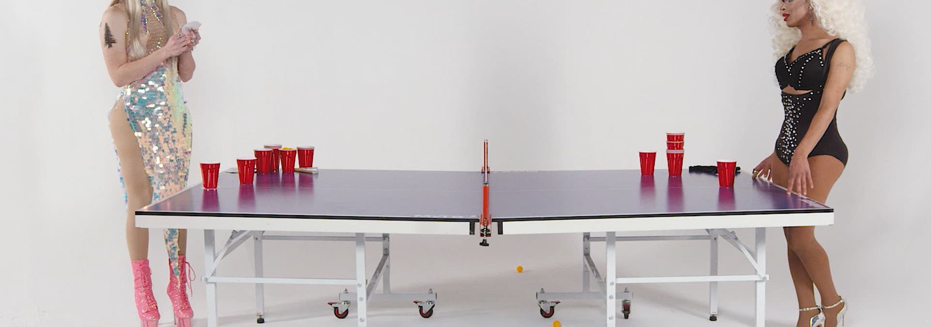 Drag queens face off in a daring game of Fear Pong, blending humor, boldness, and unexpected challenges.