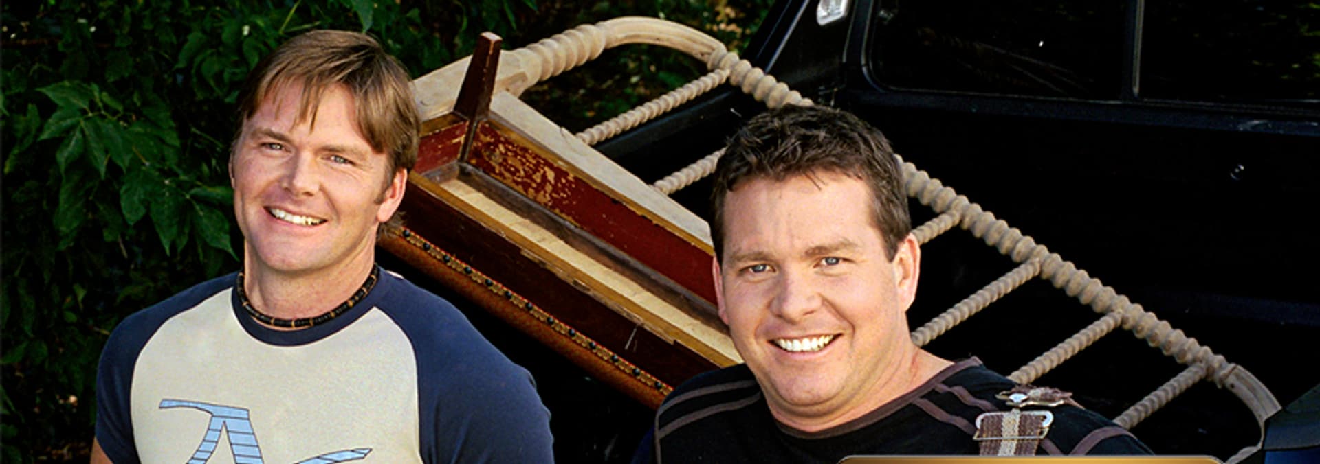 Steve and Jim got trunk in their junk and a seat in their boot! Huh? The brothers rip down a filthy broken upholstered chair and build it back up into a love seat. Then they incorporate pieces of a broken cedar trunk into a stunning new gym equipment cabinet.