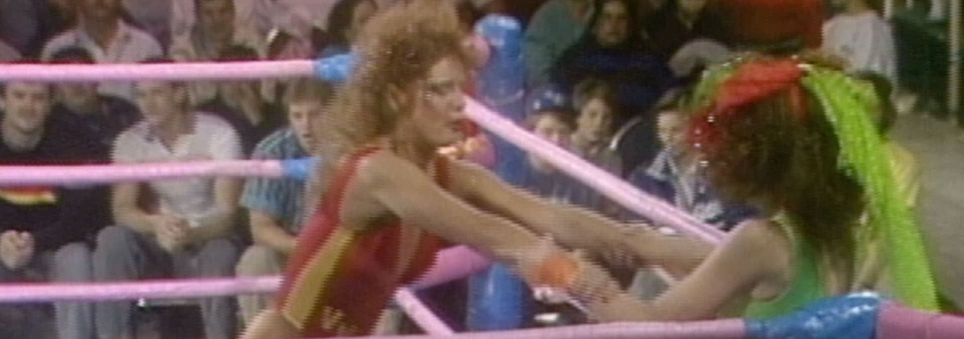 Cheerleading sensation and newcomer Vicky Victory hopes to snag the title from Ninotchka in tonight's main event. Sunny the California Girl fights Daisy and Gremlina, and Mt. Fiji erupts upon Beastie and Habana, with no referee present to curb the chaos. Roxy Astor evades Dementia's axe, and the Country Girls Sally and Babe team up against Godiva and Hollywood.