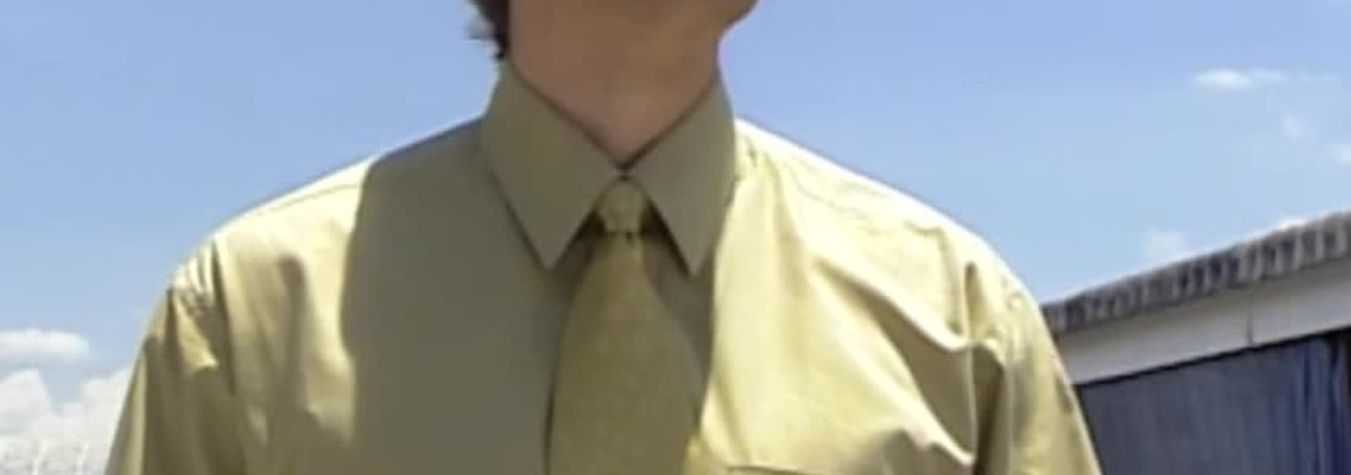 César Augusto en su auto observa un sobre. Saca una cinta (preparada por Lucía) y la coloca en el reproductor.