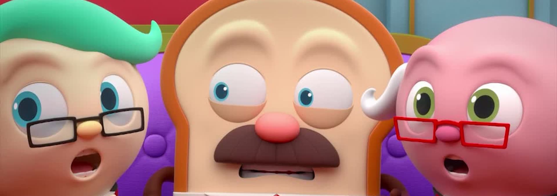 A cupcake visits Bread Barbershop. Bread gives Kid Donut a haircut. A band gets their hair done.