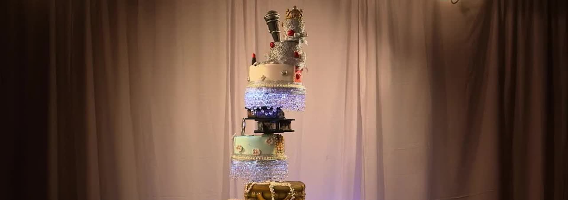 Keg cakes pour beer, and a spinning birthday cake gets plenty of bling.
