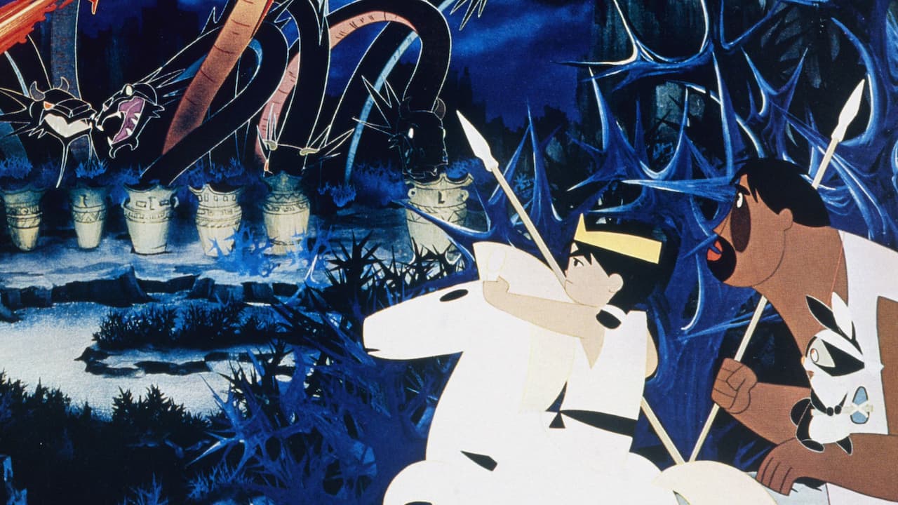 A prince and his pet rabbit embark on adventures, eventually battling an eight-headed dragon to save a beautiful young princess in this early anime.