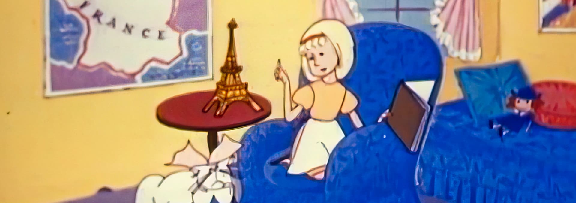 After visiting Wonderland, Alice travels to Paris with the help of a mouse, who agrees to take her there if she tells him about her favorite cheese.