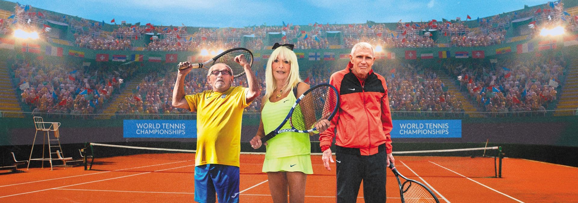 Tells the story of four tennis players as they descend on the latest International Tennis Federation’s world championship for seniors.