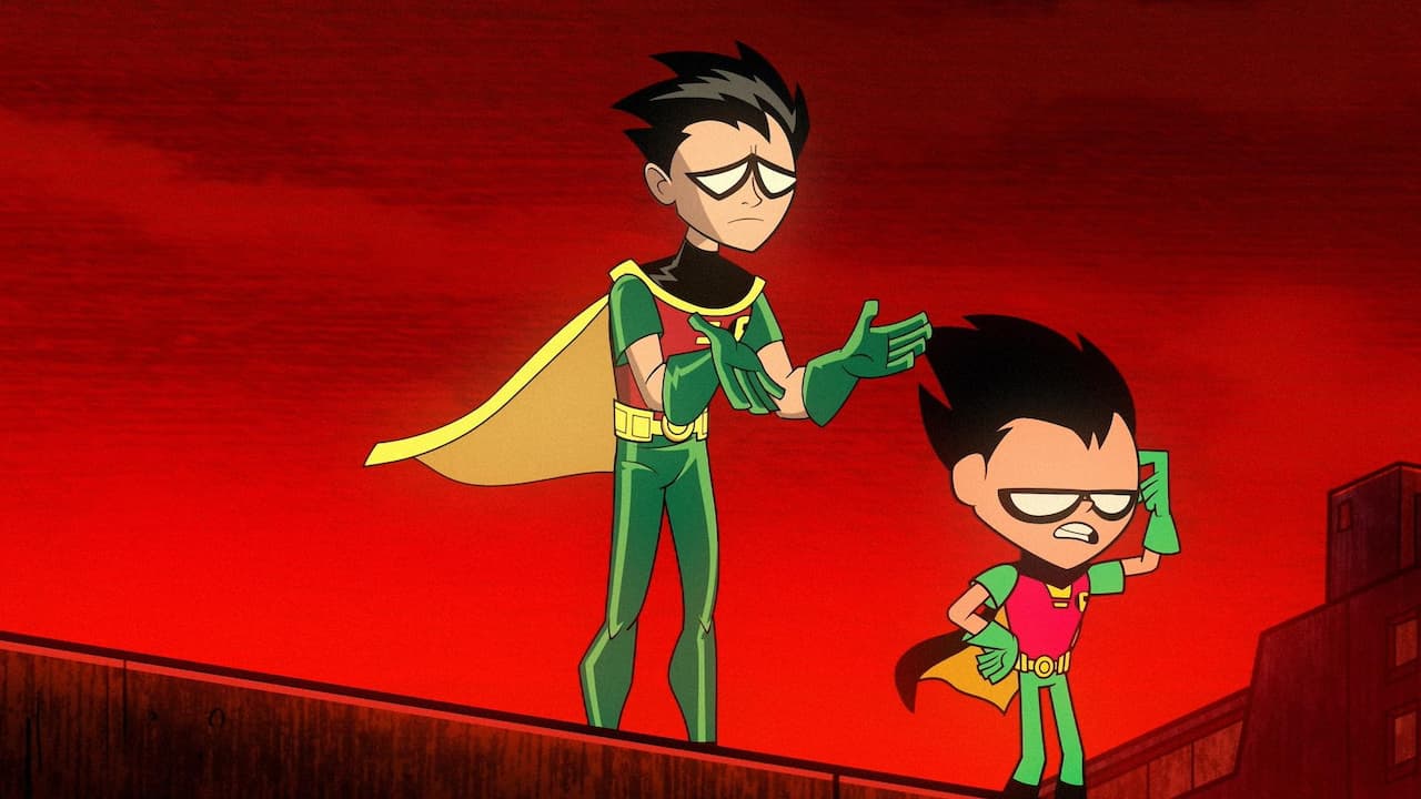 Earths collide when a mysterious entity appears over Titans Tower and throws the Teen Titans in a fight against their taller, more serious selves.