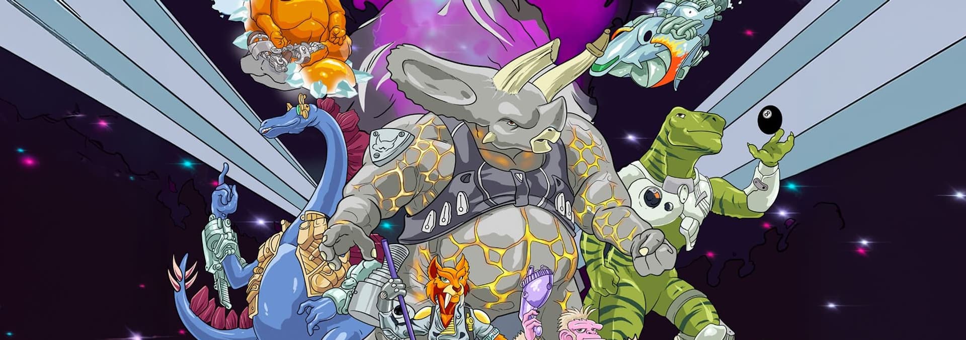 Prehistoric interplanetary mutant dinosaurs defend the galaxy from tyrannical forces, befriend alien beings and rip the ultimate synthwave mixtape.