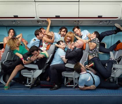 When their airplane malfunctions en route to Mexico, flight attendants resort to wacky antics to divert the attention of their eccentric passengers.
