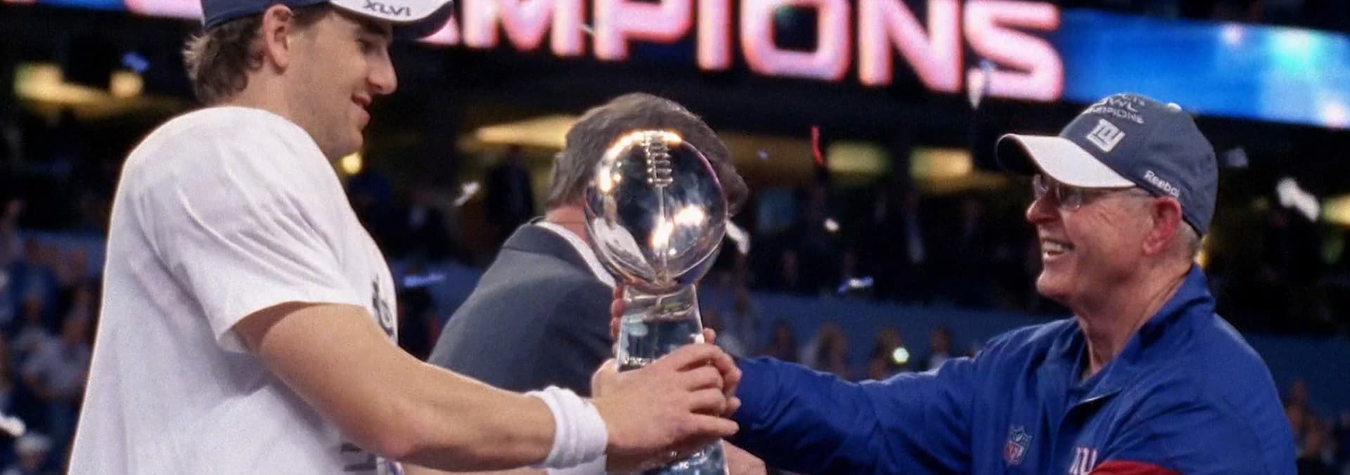 Relive the action, excitement, and thrill of Super Bowl XLVI, when the 2011 New York Giants claimed victory over the New England Patriots.