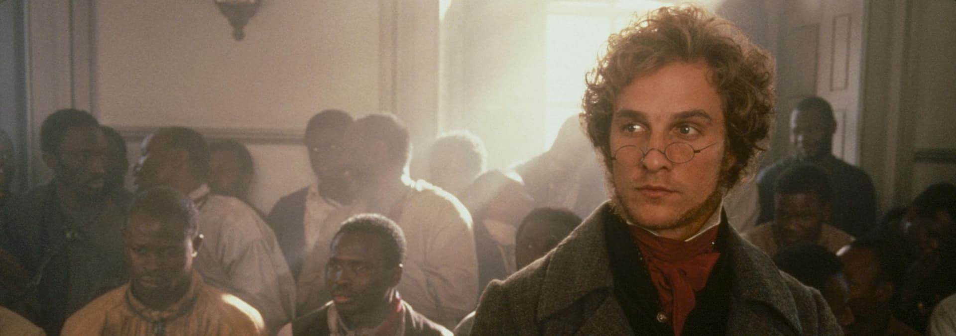 AMISTAD is about a 1839 mutiny onboard a slave ship that is traveling towards the Northeast Coast of America. Much of the story involves a court-room drama about the slave who led the revolt.