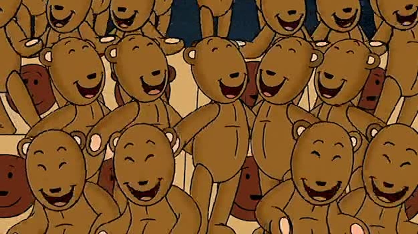 A teddy bear with an upside-down smile finds family amongst other misfit toys in the front window of Winkle's Emporium, a discount store.