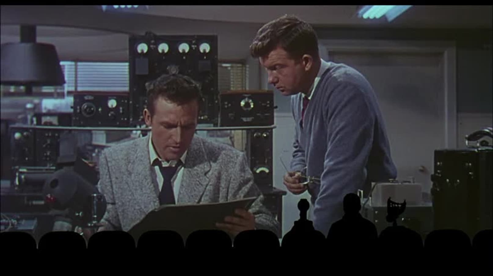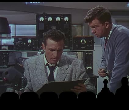 Trapped on a spaceship, a man and his robot friends watch and mock the cheesy '50s sci-fi flick they're forced to sit through as a form of torture.