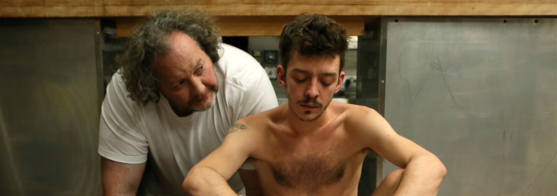 A male hustler finds himself in a love triangle with a portly Belgian baker and the baker's comely female employee.