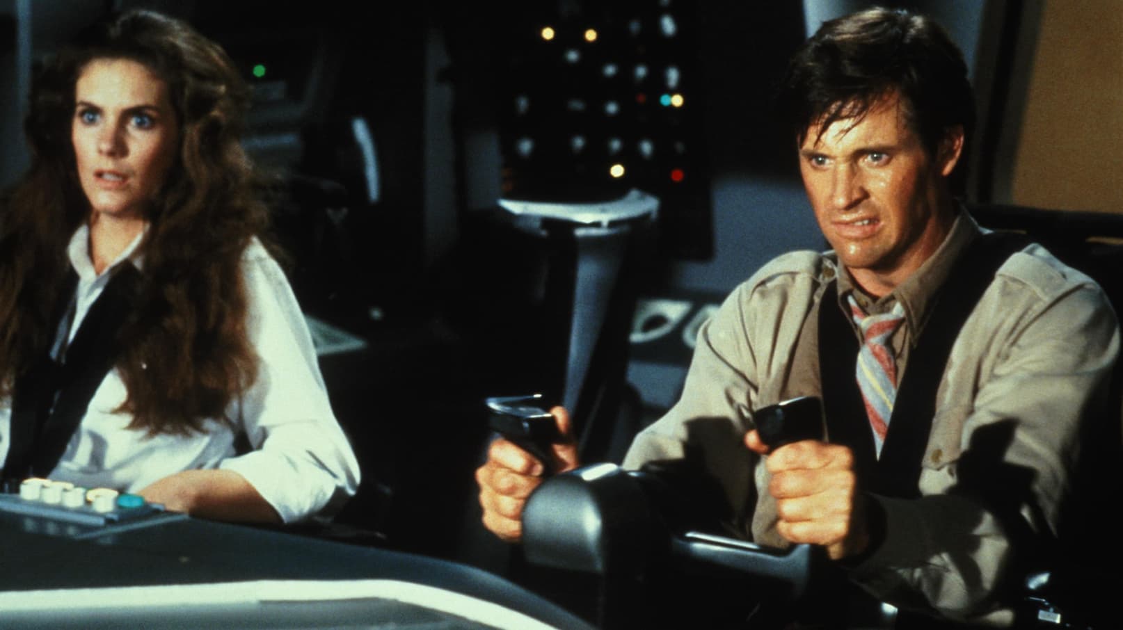 A goofy, stressed-out pilot who saved a plane in distress joins some of his old crew to stop a lunar space shuttle’s computer from self-destructing.