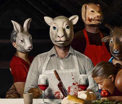 A vegetarian revenge flick that finds a young, meat-eating couple abducted during a road trip to a farm where humans are the livestock for slaughter.