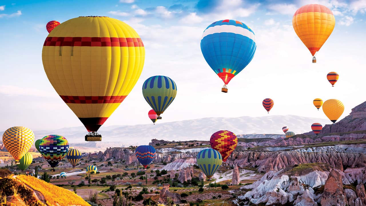 Over the course of an hour, beautiful views of a diverse landscape are revealed from the unique and breathtaking perspective of hot air balloons.