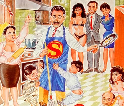 En casa de un burócrata, su mujer y su suegra se lo traen finto con todo el quehacer, y en su oficina, a las mujeres se les queman las habas por él.
