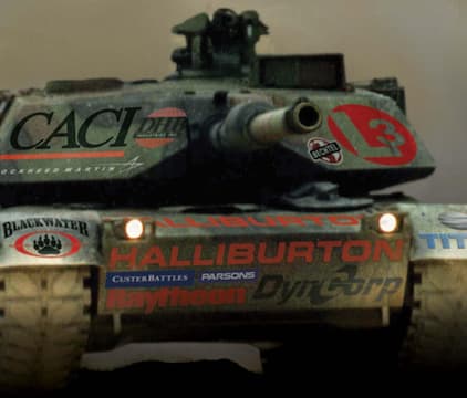 Corporate involvement in the Iraq War, from private contractors to government contracts, is explored through the lens of human and security risks.