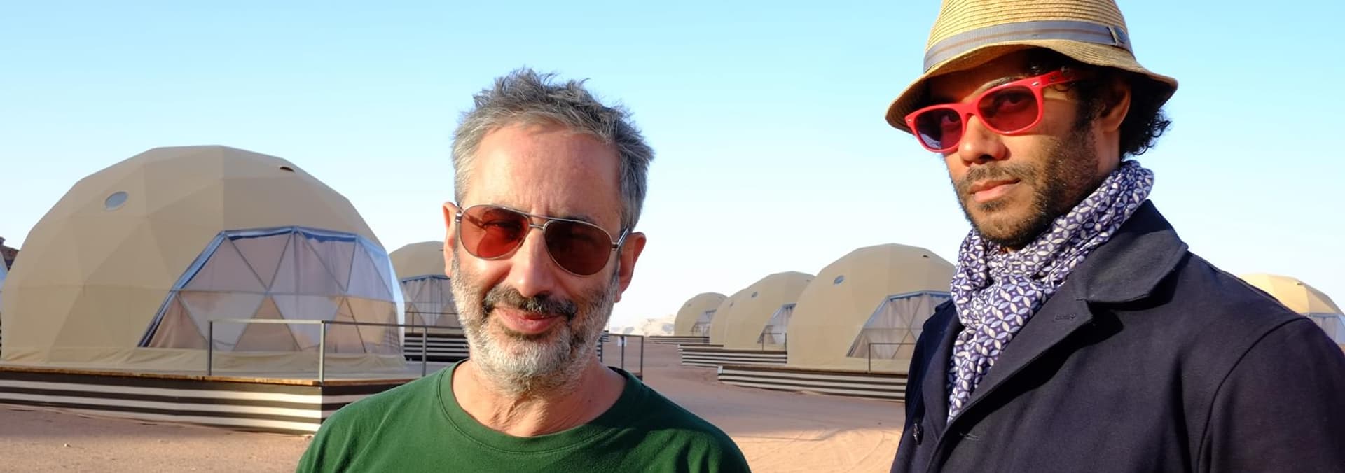 Join British comedian Richard Ayoade and children's author David Baddiel as they celebrate the Christmas holiday on their four-day trip to Jordan.